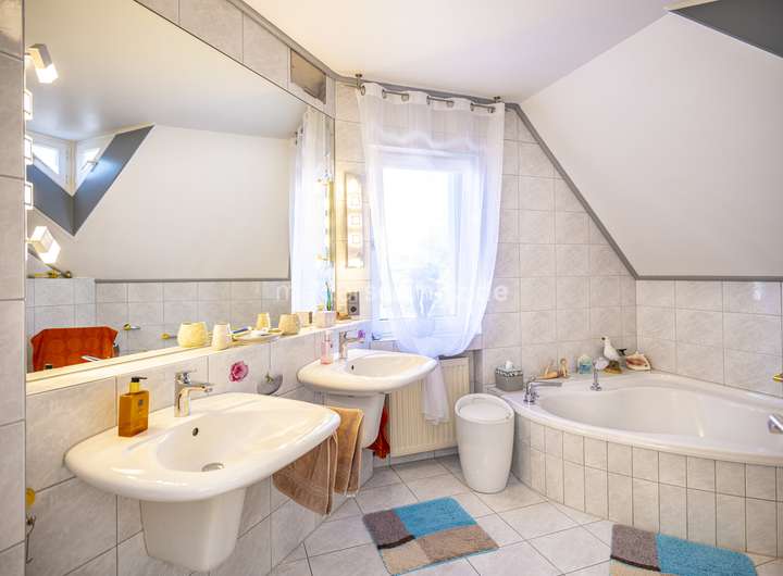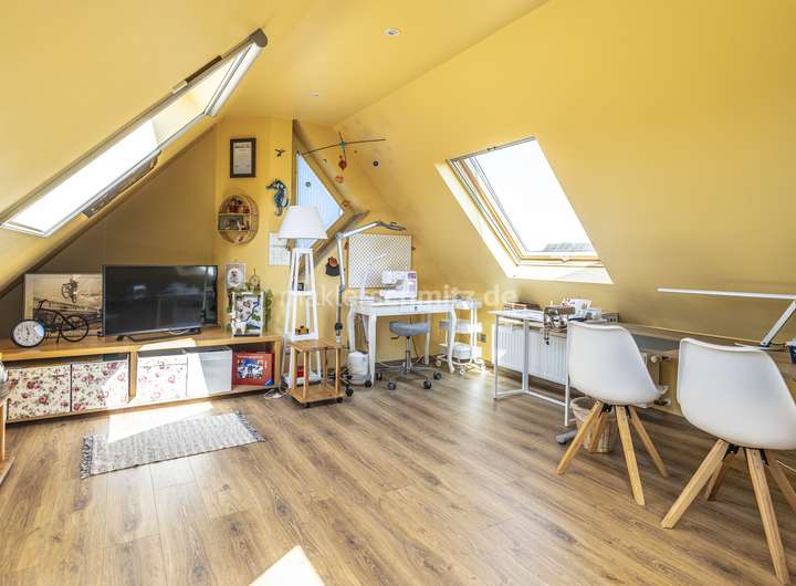 Über eine Treppe erreichen Sie das Dachgeschoss, das im Jahr 2015 vollständig ausgebaut wurde. Hier erwarten Sie ein weiteres Wohn-/Schlafzimmer sowie ein zusätzliches Badezimmer – perfekt als Jugendzimmer, Gästebereich oder Hobbyraum.