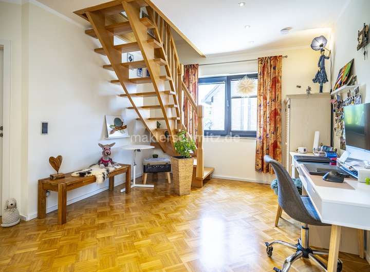 Ergänzt wird das Raumangebot durch den Keller, in dem sich ein klassischer Kellerraum sowie ein wohnlich gestalteter Praxis- oder Behandlungsraum befinden – ideal für Freiberufler oder als stiller Arbeitsbereich.