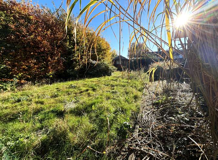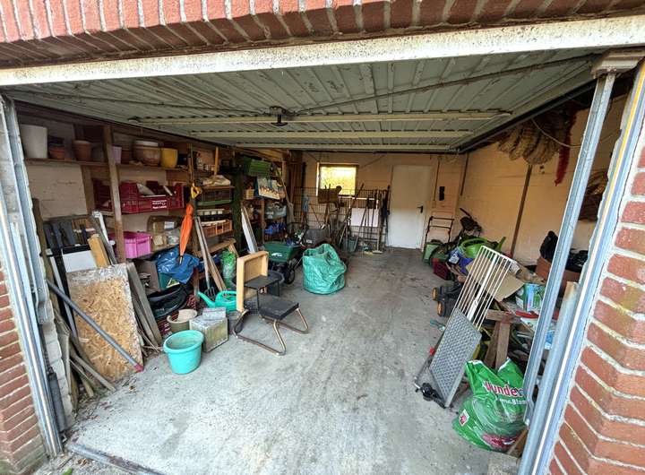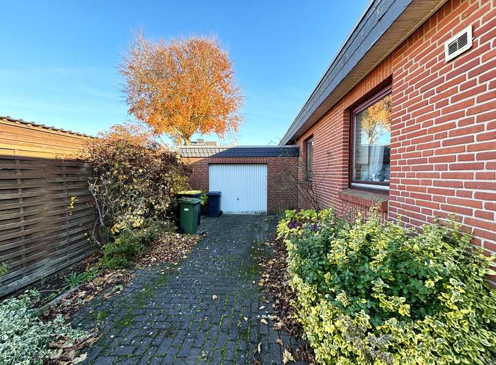 Das blickdichte Grundstück wurde pflegeleicht angelegt und läßt sich auch über die Garage mit Hinterausgang und über einen Zugang auf der rechten Seite des Objektes bequem erreichen.