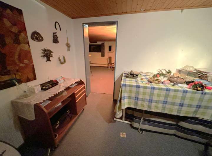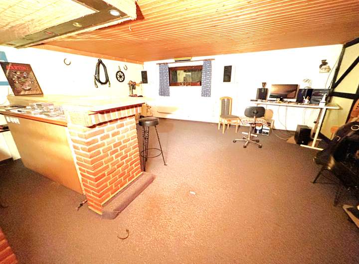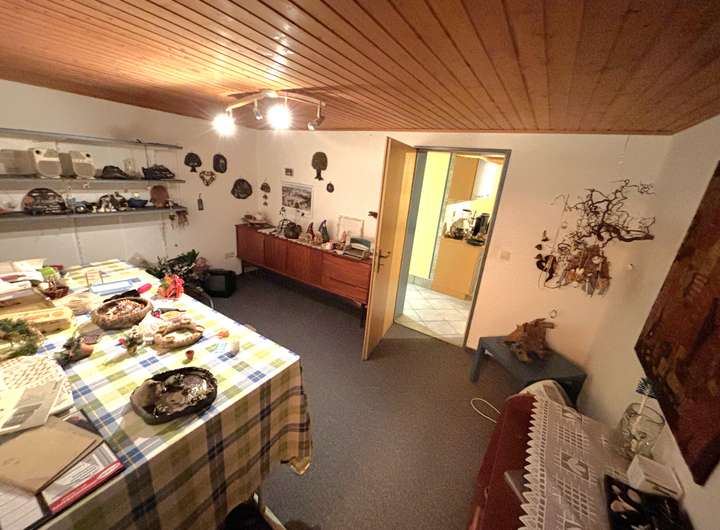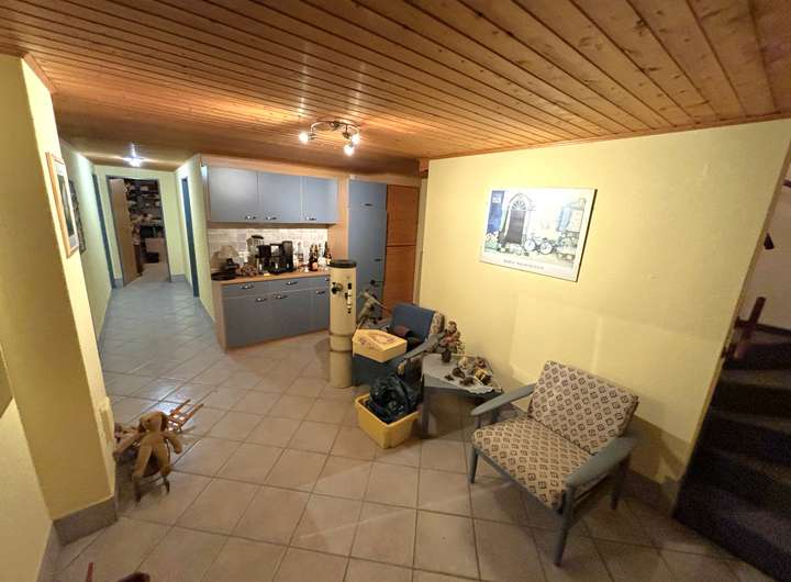 Der Winkel-Bungalow wurde voll unterkellert und wohnlich nutzbar ausgebaut. Neben einer kleinen, offenen Küche, einem Partyraum mit Bar und einem großzügigen und gefliesten Waschkeller stehen noch 4 weitere Räumlichkeiten als Lager-, Hobby oder Nutzfläche zur Verfügung.. Viel Platz für Gäste und Hobbys oder auch als Kinderzimmer für Teenager.