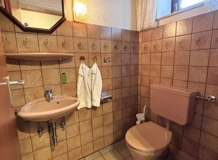 Das Gäste-WC mit Fenster wurde mit Fliesen versehen, die auch im Flur und in der Küche identisch mit aufgenommen wurden.