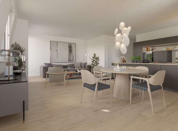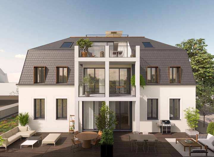 Das Dachgeschoß mit 2 Wohnungen, jeweils 3 Zimmern und Wohnflächen von ca. 97,13qm und ca. 97,46qm überzeugen durch Tageslichtbäder, Gäste-WC sowie Balkone in Süd-West-Lage.