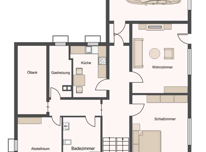 Für Ihren Fuhrpark stehen Ihnen eine Einzelgarage und ein Stellplatz am Haus zur Verfügung.