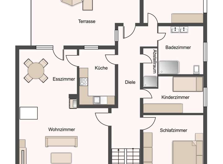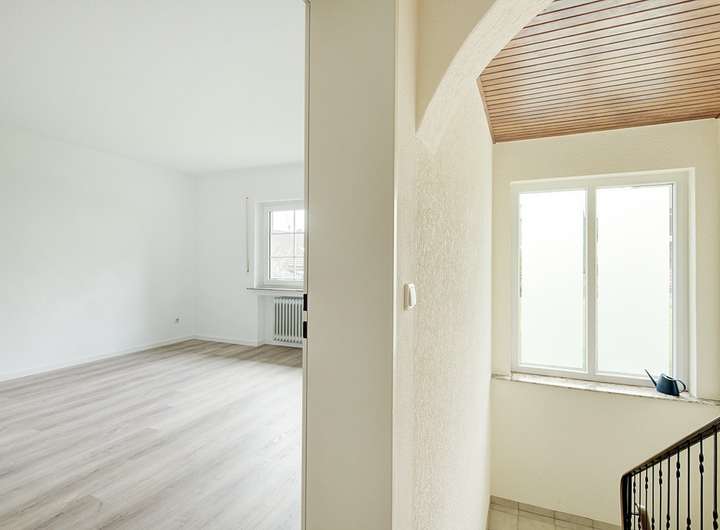 Das Obergeschoss mit ca. 110 qm überzeugt durch einen durchdachten Grundriss und helle, freundliche Räume. Mittelpunkt des Hauses ist der offene Wohn- und Essbereich mit einem Specksteinofen, der an kühlen Tagen für wohlige Wärme sorgt. Die angrenzende, praktische Kochküche bietet ausreichend platz für gemeinsames Kochen und gesellige Stunden. Außerdem stehen auf dieser Ebene ein Elternschlafzimmer, zwei Kinderzimmer sowie ein modernisiertes Badezimmer mit bodengleicher Dusche und Fußbodenheizung zur Verfügung. Die neu angelegte Terrasse lädt zum Entspannen ein und bietet einen herrlichen Rückzugsort im Grünen.