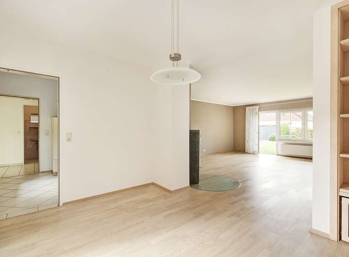 Obergeschoss: Diele, Gäste WC, Kochküche, Wohn- und Esszimmer mit Zugang auf die neue Terrasse, Badezimmer mit ebenerdiger Dusche ( 2015 ), Schlafzimmer und 2 Kinderzimmer.