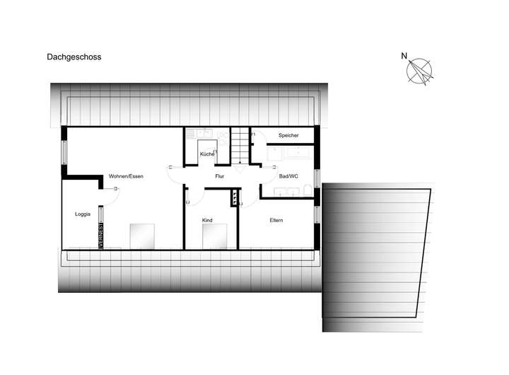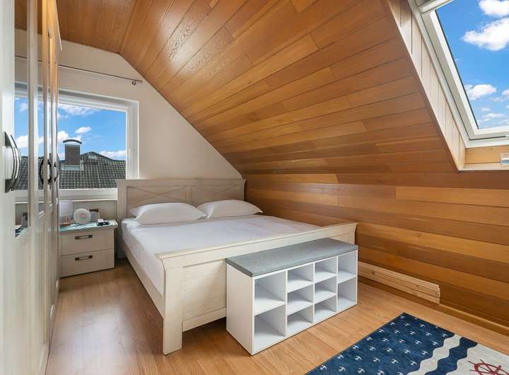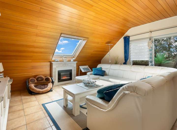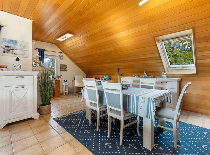 Das Obergeschoss umfasst eine vollständig ausgestattete Wohneinheit, die sich flexibel nutzen lässt, beispielsweise als Erweiterung des Eigenheims oder als potenzielle Einliegerwohnung zur Vermietung. Der Zugang erfolgt derzeit über das gemeinsame Treppenhaus; ein separater Eingang besteht aktuell nicht, kann jedoch mit geringem Aufwand durch den Einbau einer Tür im Flur realisiert werden. Hier erwarten Sie zwei mögliche Schlafzimmer, ein 2021 modernisiertes Badezimmer, eine moderne Küche sowie ein großzügiges Wohn- und Esszimmer mit direktem Zugang zum Balkon. Zusätzlich bieten ein Speicher und der Dachboden praktischen Stauraum. Insgesamt präsentiert sich das Obergeschoss hell, gepflegt und vielseitig nutzbar.