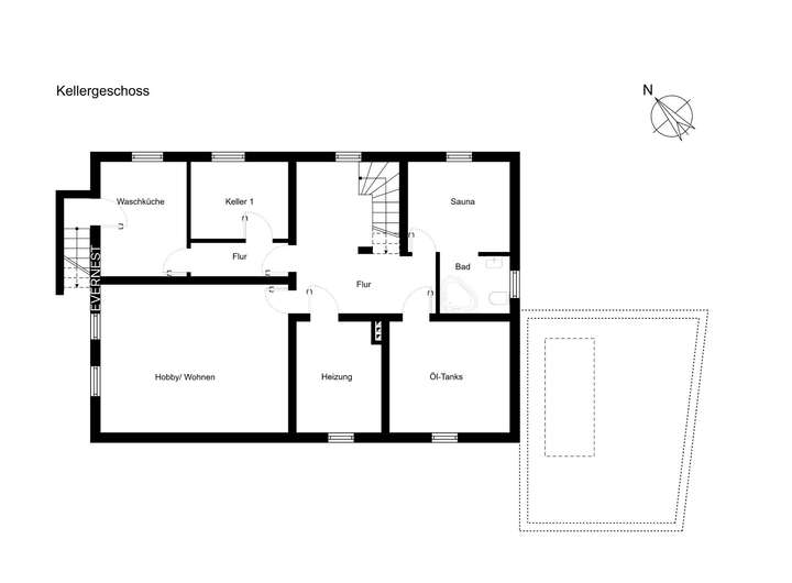 Das Kellergeschoss rundet das Raumangebot ab. Neben einer Waschküche und einem Vorratsraum befindet sich hier ein Schlafzimmer, das aktuell von den Eigentümern genutzt wird. Ein besonderes Highlight ist der Wellnessbereich mit Sauna und Solarium (Wohnlich ausgebaute Nutzfläche). Das angrenzende Badezimmer ergänzt das Gesamtbild. Diese beiden Räume laden zum entspannen und abschalten ein. Auf dieser Ebene liegen außerdem der Heizungsraum mit den Öltanks sowie ein separater Außenzugang.
