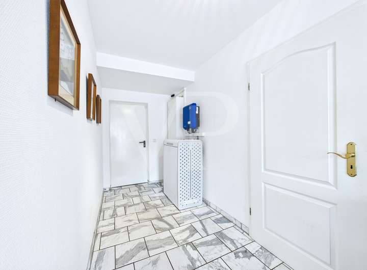 Das Wohnhaus kann flexibel in zwei bis drei Einheiten geteilt werden und bietet zudem eine eigenständige Einliegerwohnung mit separatem Zugang. Dadurch eignet sich die Immobilie sowohl für Mehrgenerationenkonstellationen als auch für die Integration von Wohnen und Arbeiten unter einem Dach. Die modernisierte Heizanlage sorgt gemeinsam mit der teilweisen Fußbodenheizung und einer Klimaanlage unter anderem im Wohn- und Essbereich jederzeit für ein angenehmes Raumklima. Der Strombedarf wird dabei effizient über eine 17 kWp Photovoltaikanlage mit 16 kWh Speicher gedeckt.