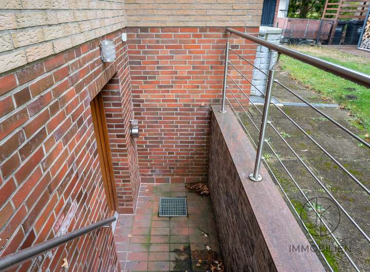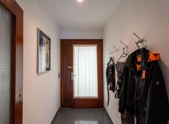 Das Haus verfügt über zwei Eingänge: den heutigen Haupteingang an der Vorderseite sowie einen weiteren Zugang auf der Rückseite, der ursprünglich als Haupteingang genutzt wurde. Diese Aufteilung bietet Flexibilität bei zukünftigen Anpassungen oder getrennten Nutzungen einzelner Bereiche.