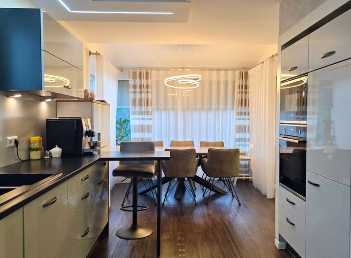 Im Erdgeschoss empfängt Sie ein großzügiger, offener Wohn- und Essbereich mit integrierter Küche, auf zusammen runden 60 m² reinem Wohnkomfort.