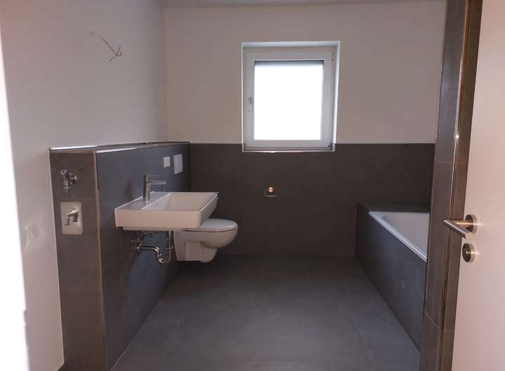 • Tageslichtbad mit Wanne, ebenerdiger Dusche, Handtuchheizung & Fußbodenheizung