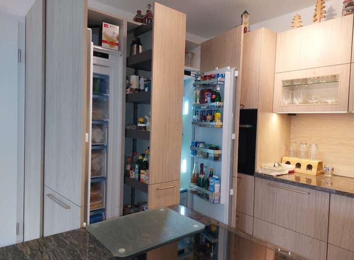 • Hochwertige Einbauküche mit Markengeräten (Neupreis 17.000 €-erst 6 Monate alt), Übernahme möglich für 7.500 €