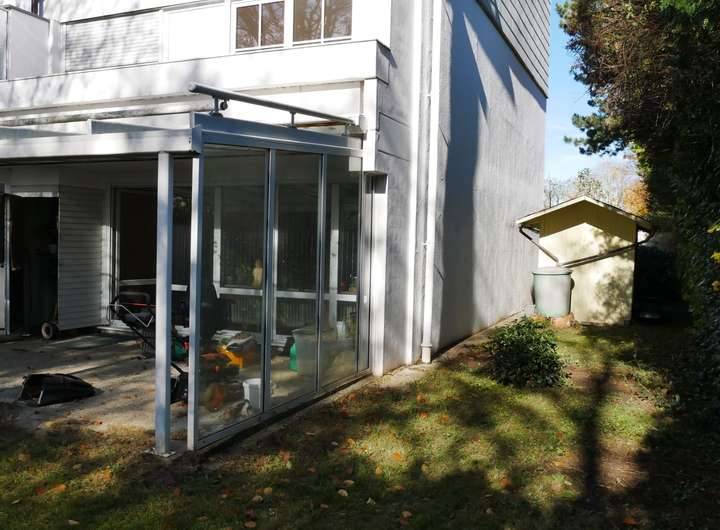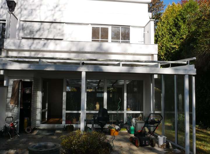 • Überdachte Terrasse mit Pergola und direktem Zugang zum Garten