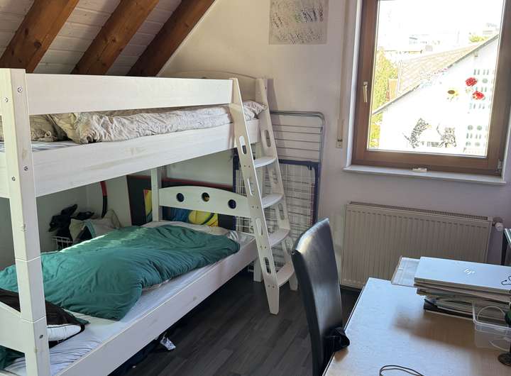 Das Kinderzimmer ist ebenfalls großzügig geschnitten und hell, mit vielseitigen Nutzungsmöglichkeiten.