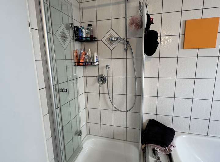 Das Badezimmer ist geräumig und hell gefliest. Eine Badewanne, eine separate Dusche sowie ein stilvolles Doppelhandwaschbecken schaffen ein Ambiente zum Wohlfühlen. Ein separates Gäste-WC mit Fenster, steht ebenfalls zur Verfügung.