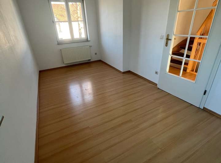 DG: ein großes Zimmer mit großer Fensterfront, auch Laminatboden, kleine Abstellkammer.