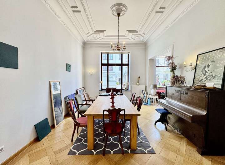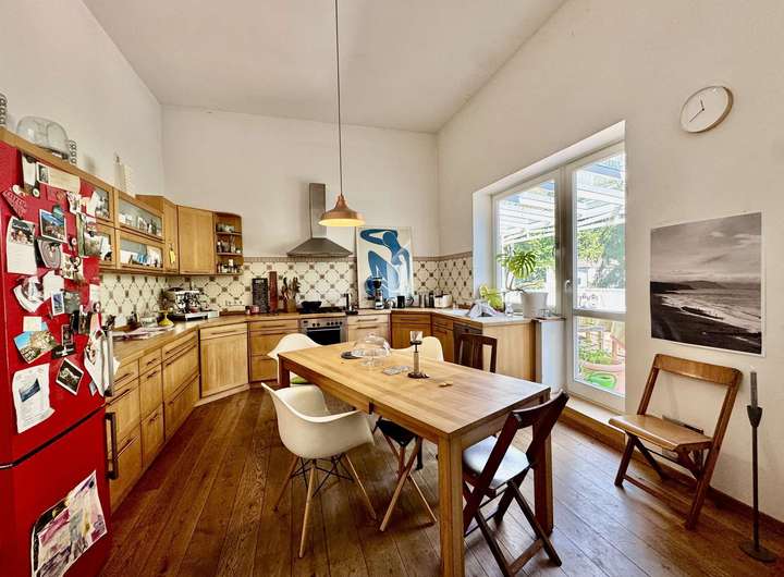 Das großzügige Reihenendhaus wurde um das Jahr 1900 errichtet und bietet mit rund 350 Quadratmetern Wohnfläche außergewöhnlich viel Platz. Im Jahr 2006 wurde das Haus aufwendig saniert und befindet sich seither in einem substanziell guten Zustand. Ein besonderes Highlight sind die drei Dachterrassen, von denen eine fast 30 Quadratmeter misst. Zwei Garagen im Haus sowie zwei zusätzliche Außenstellplätze bieten einen Komfort, der in dieser Lage seinesgleichen sucht.