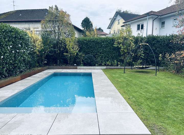 Im Frühling 2025 wurde der 7 x 3 m große Pool mit Wärmepumpe erbaut, mit einer Wassertiefe von 1,50 m. Der Pool lässt sich mit einer elektrischen Poolabdeckung öffnen- und schließen. Die korrekte Dosierung des Poolwassers (ph-Wert und Chlor) wird durch eine automatisierte Dosieranlage reguliert.