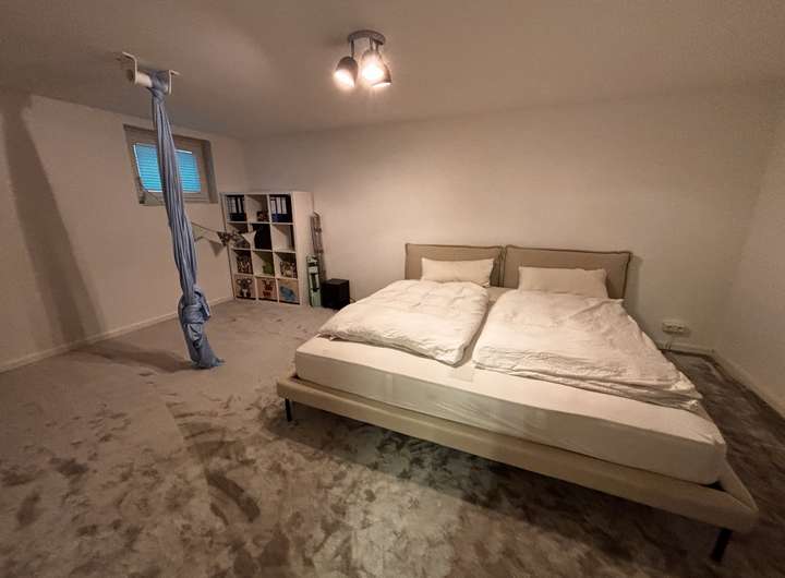In Untergeschoss befindet sich das 5. beheizte Zimmer, derzeit mit Teppichboden ausgestattet. Auch darunter befindet sich ein Laminatfußboden.
