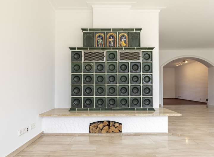 - Großzügiger Wohnbereich mit gemütlichem Kachelofen – ideal für behagliche Abende und stilvolle Wohnatmosphäre