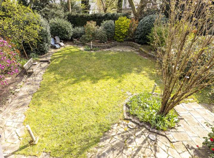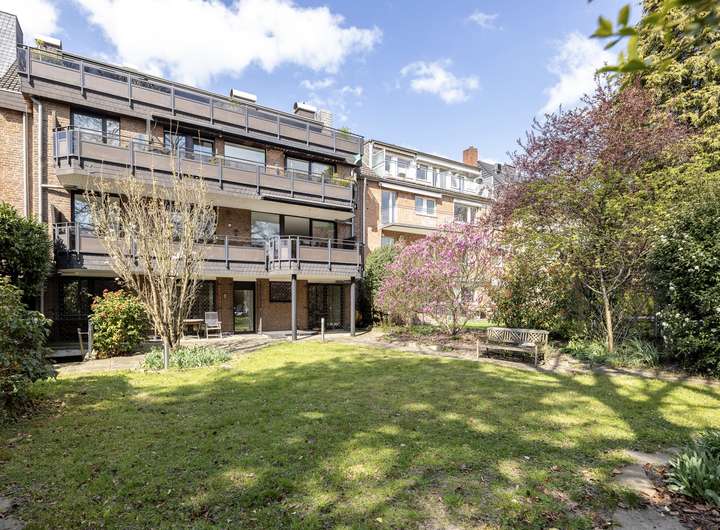 Von dieser Einheit ist der Garten über mehrere Zugänge direkt zugänglich. Auch dieser ist nur für die zum Verkauf stehende Einheit mit einem Sondernutzungsrecht belegt. Von den Eigentümern mit Liebe zum Detail angelegt, lässt sich hier die Ruhe der guten Nachbarschaft genießen. Abgerundet wird dieses Angebot über eine Doppelgarage, die ausreichend Platz für Autos und Fahrräder bietet.