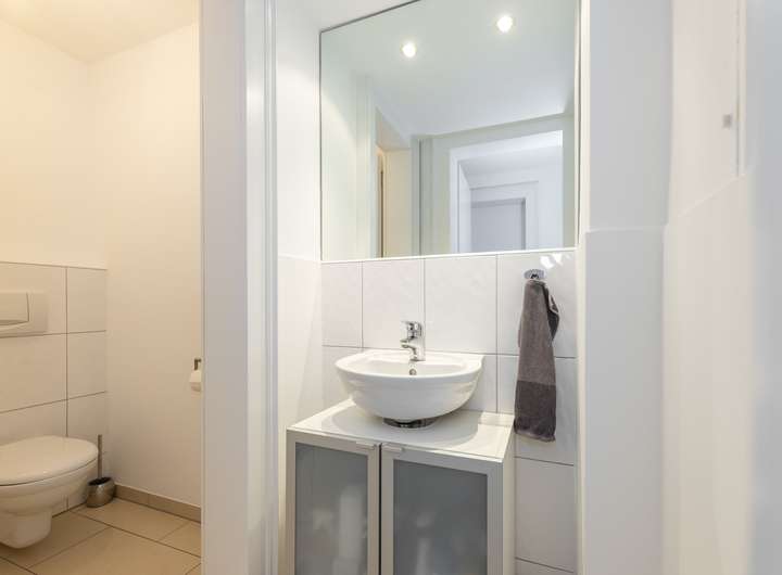 Eine Umnutzung der Büroeinheit zu Wohnraum ist bei Bedarf mit dem Bauamt der Stadt Neuss abzustimmen, sollte jedoch aus unserer Erfahrung unproblematisch sein. Es wäre somit durchaus denkbar, diesen Bereich für Gäste oder auch Pflegepersonal zu nutzen. Die Einheit ist völlig autark und über einen eigenen Zugang vom Treppenhaus erreichbar. Eine Nutzung bis ins hohe Alter stellt somit kein Problem dar.