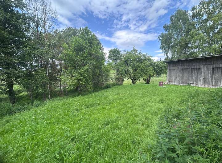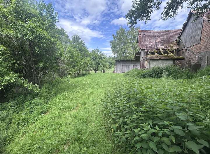 Baugrund mit Abrisshaus in Ortsrandlage, unverbaubarer Ausblick, Pferde und Biber im Garten!