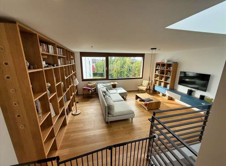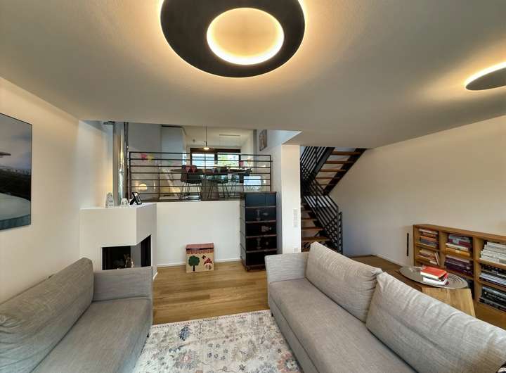 Dieses moderne Split-Level-Haus (Baujahr 2022) in Ginnheim beindruckt durch innovative Architektur, eine durchdachte Raumaufteilung und viel natürlichem Licht. Auf acht Ebenen verteilen sich private Rückzugsräume, großzügige Gemeinschaftsbereiche und hochwertige Ausstattungselemente, die hohen Wohnkomfort für Familien und Paare gewährleisten. Zu den Highlights gehören eine luxuriöse Bulthaup Einbauküche sowie eine Dachterrasse, die stimmiges Design mit Funktionalität vereint.