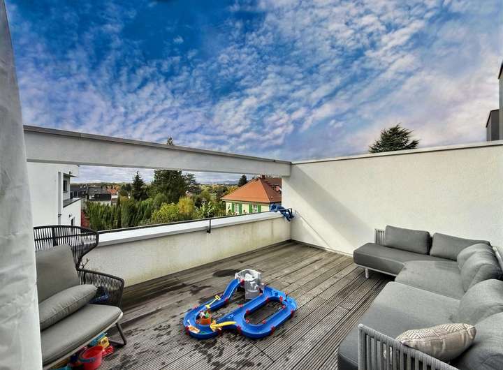 - drei Terrassen, Dachterrasse mit Taunusblick