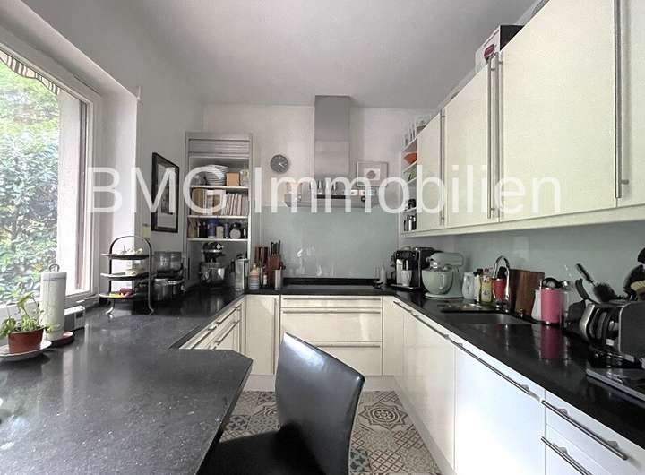 ** 1 Küche mit weißer hochwertiger EBK und Markengeräten (Kochfeld mit Induktion, 2 Backöfen mit Mikrowellen, 1 Dampfgarer, Geschirrspüler)