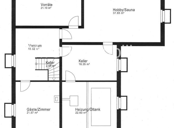 Hier befinden sich ein praktisches Arbeitszimmer, ein Gästezimmer, eine private Sauna sowie ein Hauswirtschafts- und Vorratsraum – ideal für zusätzlichen Stauraum und Komfort.