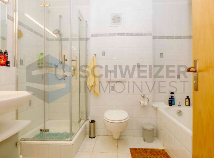 Das Obergeschoss umfasst zwei großzügige Zimmer, die sich flexibel als Schlaf-, Arbeits- oder Gästezimmer nutzen lassen. Ein Badezimmer mit Badewanne und Dusche komplettiert diese Ebene. Vom südlich gelegenen Zimmer führt der Zugang auf einen sonnigen Süd-Balkon. Das nördliche Zimmer verfügt über zwei Eingänge und kann bei Bedarf in zwei Räume geteilt werden.