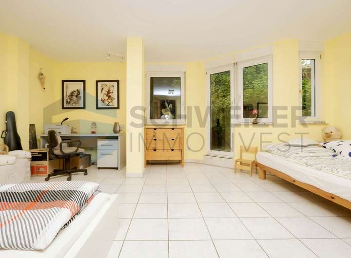 Das Gartengeschoss bildet ein besonderes Highlight: Ein großzügiger Hobbyraum mit eigenem Bad, Küchenzeile und kleiner Terrasse wurde vollständig als Wohnraum ausgebaut – inklusive Fußbodenheizung, großer Fensterflächen und angenehmer Deckenhöhe. Dieser Bereich eignet sich hervorragend für Gäste, Homeoffice oder als private Suite.
