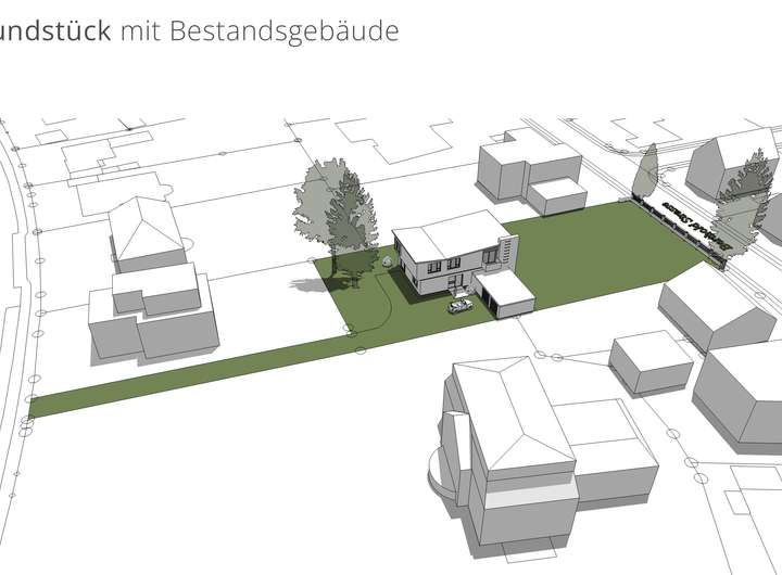 Ob Sie die Grundsubstanz des sicherlich in die Jahre gekommenen bestehenden Hauses nutzen möchten, oder -was aus unserer Sicht mehr Sinn macht- ein völlig neues Konzept entwickeln, welches Ihre Vorstellung von einem Zuhause verwirklicht: dieses Grundstück bietet den perfekte Rahmen!