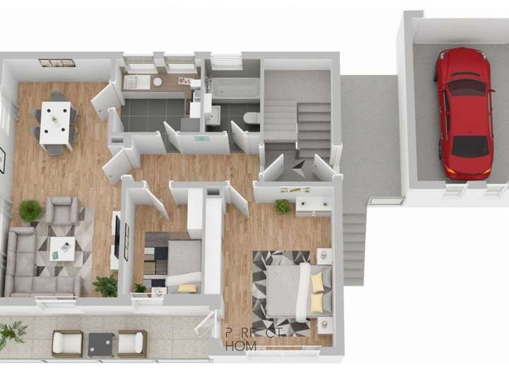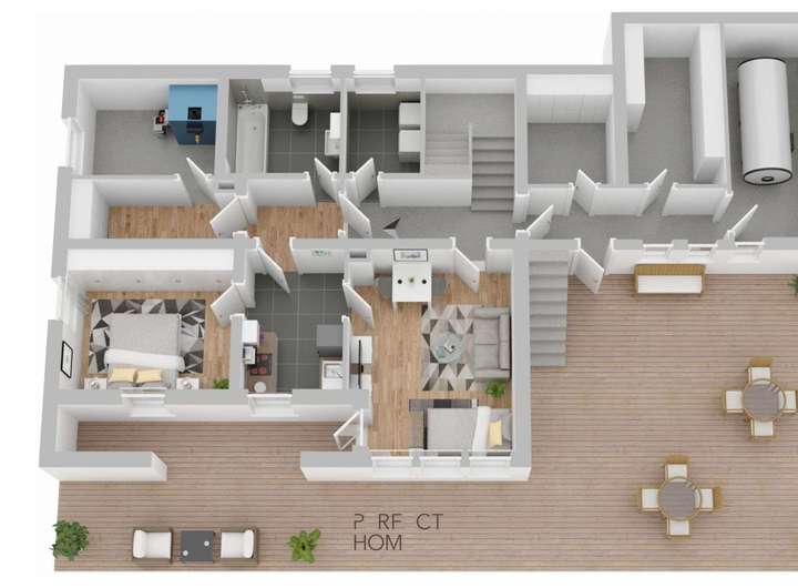 Die Immobilie umfasst drei Wohneinheiten sowie ein ausbaufähiges Dachgeschoss mit Potenzial für zusätzlichen Wohnraum. Eine große Terrasse sowie zwei Balkone sorgen für hohen Wohnkomfort. Zudem stehen eine Doppelgarage und weitere Stellflächen zur Verfügung.