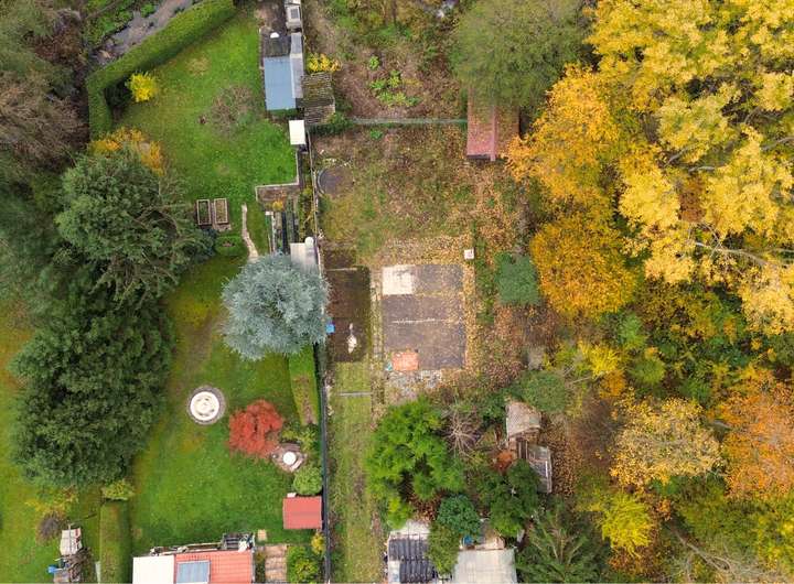 Derzeit befindet sich auf dem Grundstück noch ein kleiner Altbestand, der in Eigenleistung entfernt werden muss.