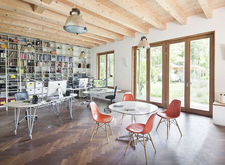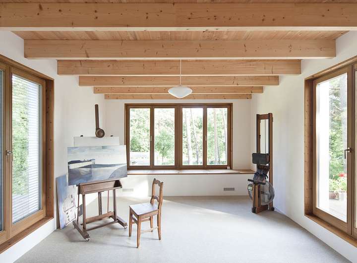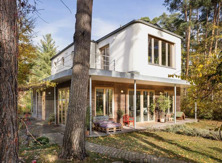 Das Einfamilienhaus in Holzrahmenbauweise wurde 2011 in Anlehnung an die Bootshausarchitektur der 1920er Jahre errichtet. Das preisgekrönte Konzept von MÜLLER Architekten Berlin verbindet klare Formensprache mit warmen Materialien und einem offenen, lichtdurchfluteten Raumgefühl.
