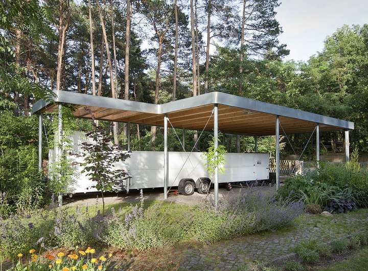 - Carport ca. 50 m² mit 4 Stellplätzen (wohnmobiltaugliche Höhe)