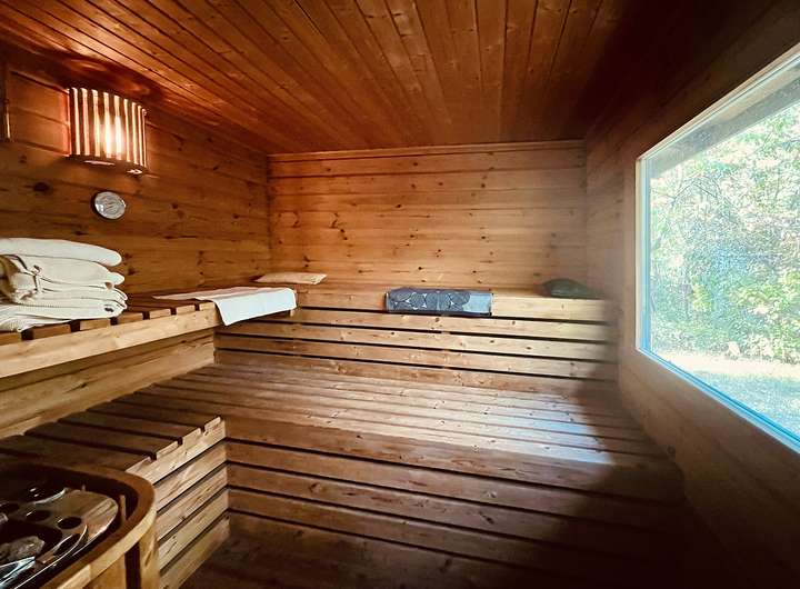 - Saunahaus mit Dusche, Ruhebereich und Waldblick