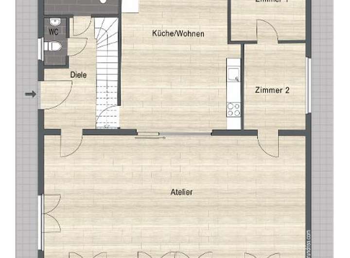 - Raumhöhe: 3,60m Erdgeschoss / 2,80m Obergeschoss