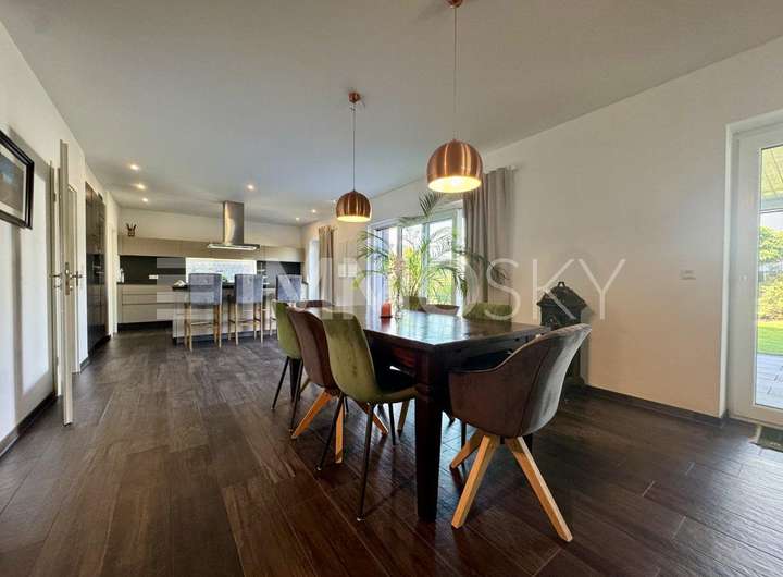 Der offene Grundriss schafft ein helles Ambiente und verbindet Innen- und Außenbereich auf harmonische Weise.