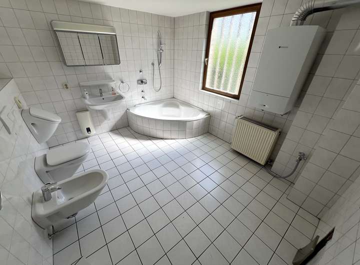 Helles Tageslichtbad mit Wanne, Dusche, Bidet, Urinal