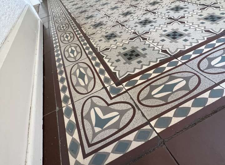 Historische Stilelemente (Originalfliesen, Treppenhaus)