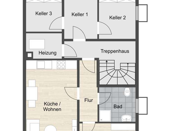 Das Mehrfamilienwohnhaus besitzt 1 Erdgeschoss-Wohnung mit 80 qm und Gartenanteil, 1 Obergeschosswohnung mit Balkon und 80 qm sowie 1 Einliegerwohnung im Souterrain mit je 40 qm.