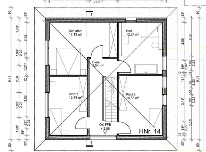 Im Obergeschoss erwarten Sie zwei großzügige Kinderzimmer, ein ca. 12 m² großes Tageslichtbad mit Badewanne und Dusche, sowie das etwa 18 m² große Elternschlafzimmer mit viel Platz zur persönlichen Entfaltung. Hohe Decken und viel Licht lassen die Räume besonders weitläufig und wohnlich wirken und setzen architektonische Akzente.