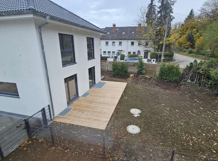 Auch der Garten wird schlüsselfertig und gepflegt übergeben – mit frisch verlegtem Rollrasen, der sofort ein grünes, einladendes Gesamtbild schafft und den Außenbereich abrundet.