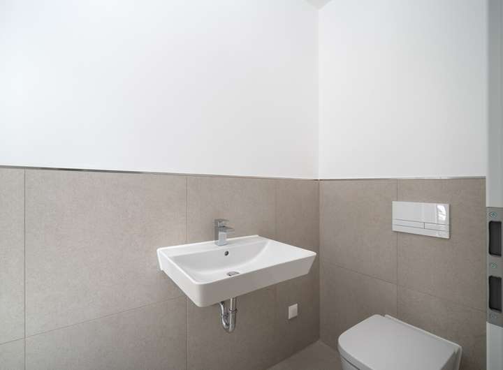 - Schöne, großformatige Fliesen in den Badezimmern