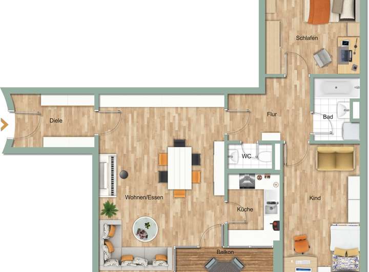 + Einbauküche (Eigentüm der Mietern, ggf. Ablöse)