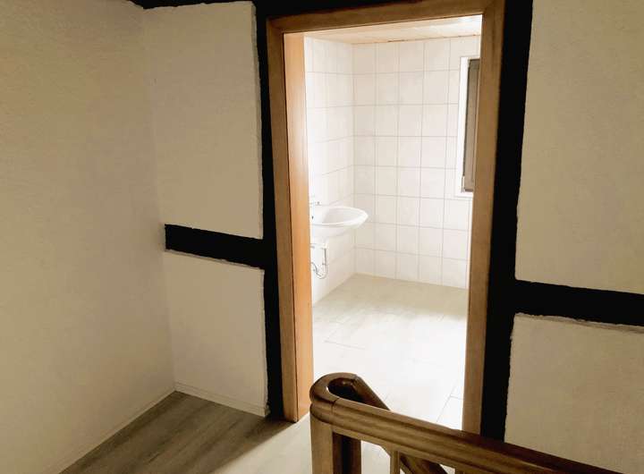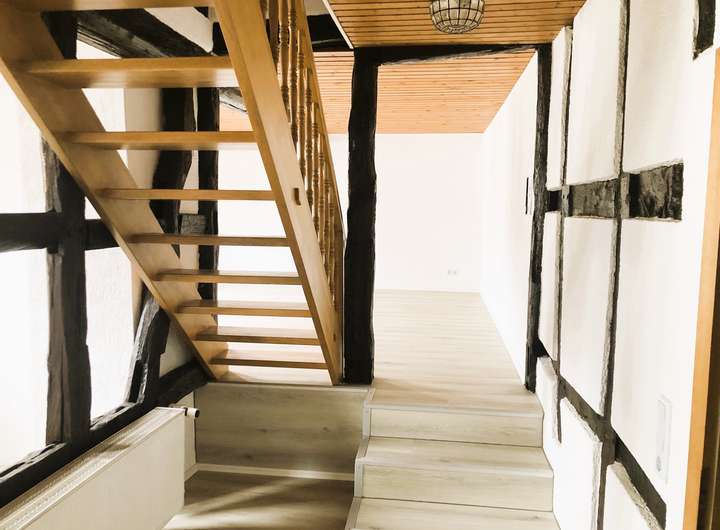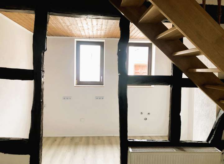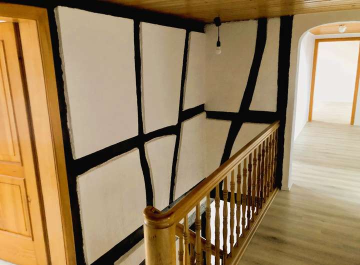 Alle Holzfenster doppelverglast. Teilweise freigelegtes Fachwerk.