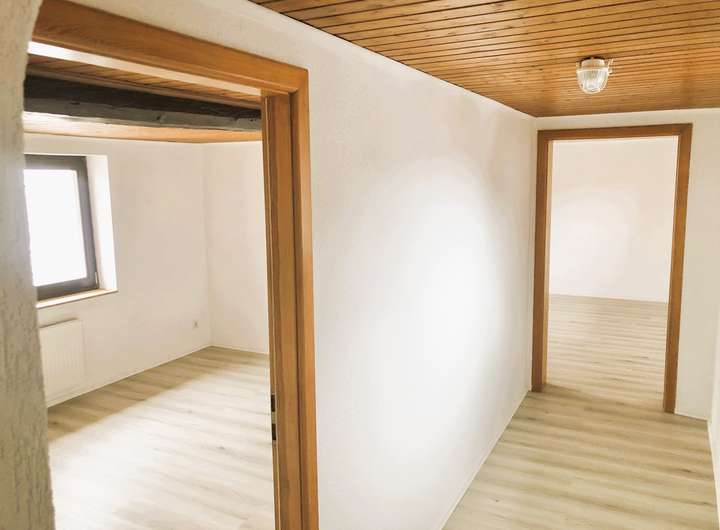 Interessantes, außen gedämmtes, frisch angelegtes und innen renoviertes Haus mit zwei möglichen Wohneinheiten (115m²/46m²), getrennt oder über Verbindungsraum miteinander nutzbar. Zudem gibt es noch einen 104m² großem Raum, den man als Wohnraum oder als Hobby/Fitness/Sauna/Werkstatt, für Feiern etc. gestalten kann. Er ist aber auch gewerblich nutzbar, (Starkstrom, Wasseranschluss mit 2 Funktionsräumen sowie überdachte Lagermöglichkeiten außen vorhanden).
